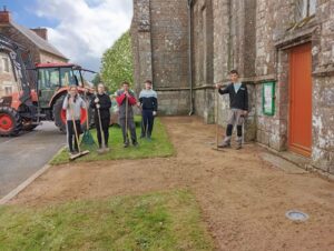 Plusieurs activités étaient au programme : nettoyage des allées et des abords autour de l’église et de la médiathèque. Entretien des allées du cimetière avec l’équipe des bénévoles ainsi que les plantations au jardin pédagogique.