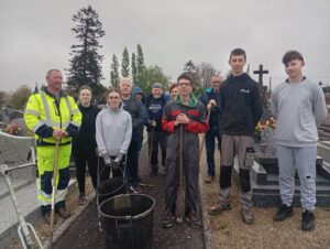 Ce mardi 14 avril 2026, rencontre intergénérationnelle dans les allées du cimetière. L’équipe de bénévoles encadrait les jeunes de l’opération « argent de poche » du printemp, accompagné de Serge.