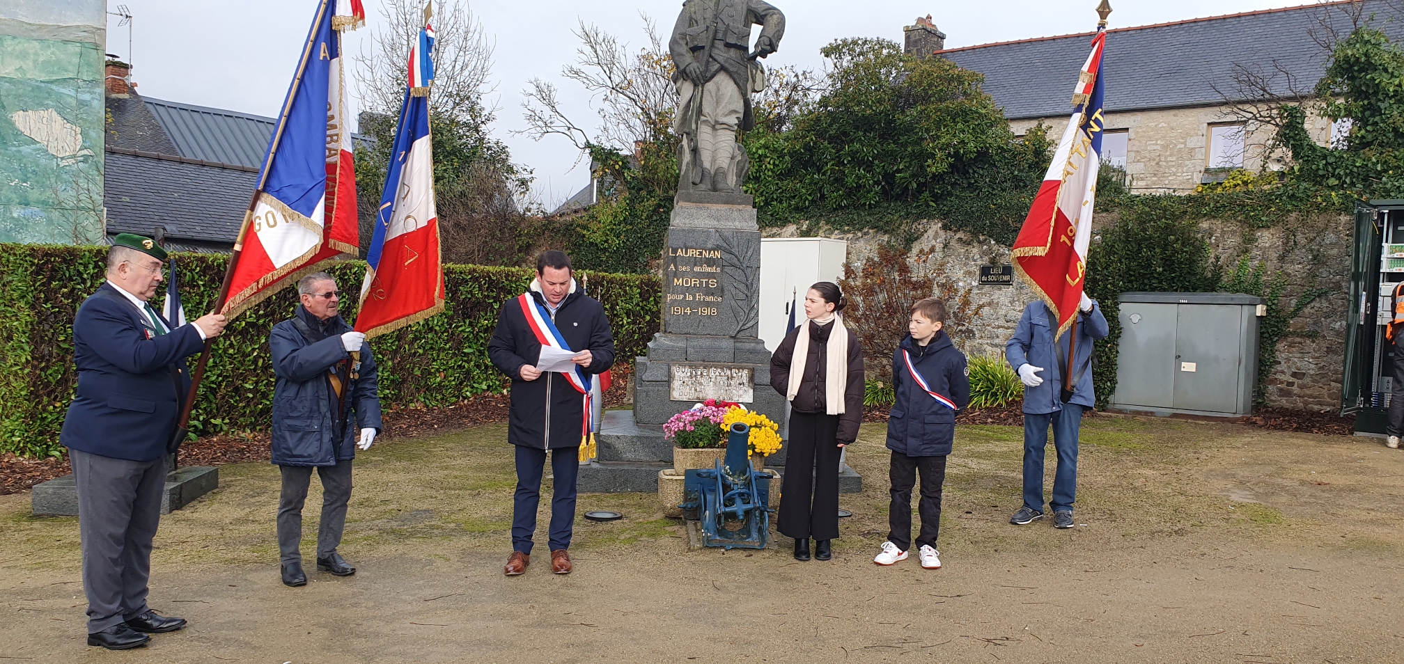 Entourés des portes drapeaux, de Timéo Daniel, élu au conseil communautaire des jeunes, les élus ont procédé aux lectures dont le message des Ministres des Armées et des Anciens Combattants.